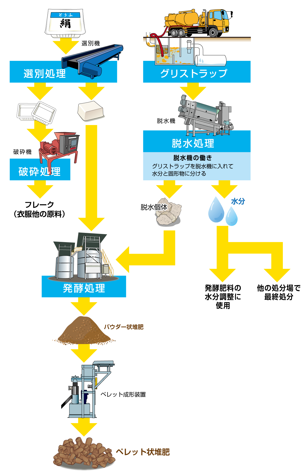 廃棄物処理サービスの提供とペレット状堆肥製造プロセス