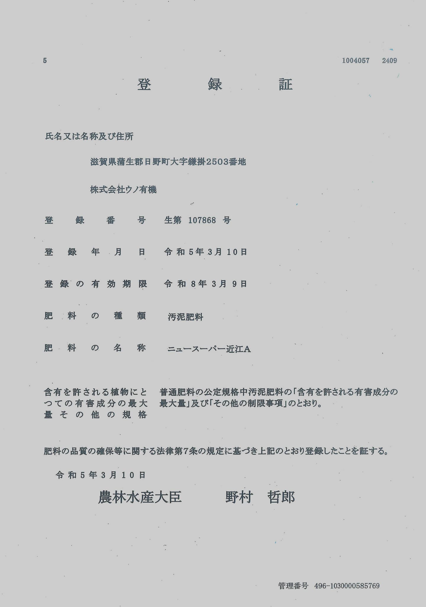 | 2023 年 3 月 | 普通肥料生産事業者届出 |
